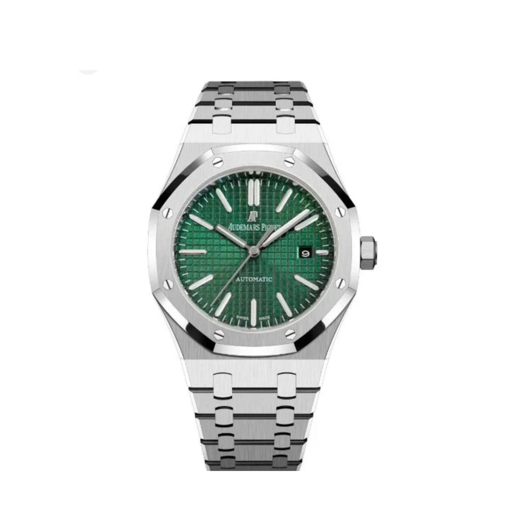 The sunburst green face adds a modern yet classy edge, while the ultra-thin automatic movement ensures superior performance. Whether worn for a formal event or as a statement piece in everyday life, the Royal Oak 15202 Green is a symbol of sophistication and prestige.