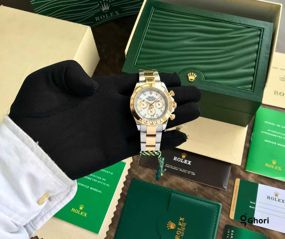 The Rolex Cosmograph Daytona is a classic symbol of speed, accuracy, and style. This 1:1 custom-grade replica is created to reflect the original Reference 126500LN in every detail, from its perfect proportions to its luxurious two-tone finish. It is designed for those who appreciate the Rolex heritage. This piece combines the look and feel of the real model with outstanding craftsmanship.
